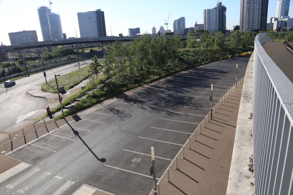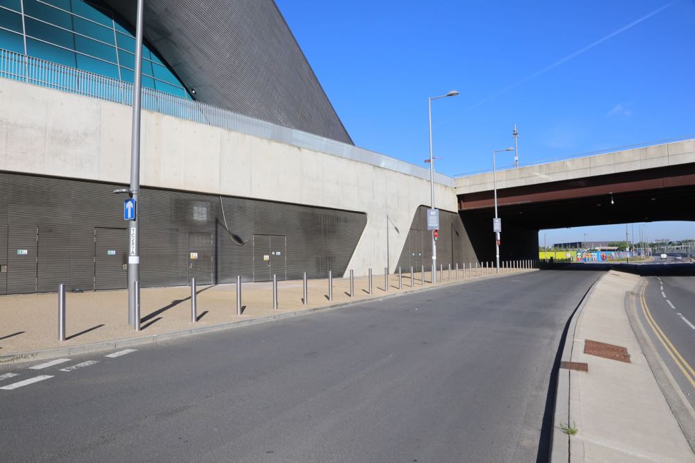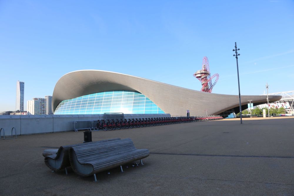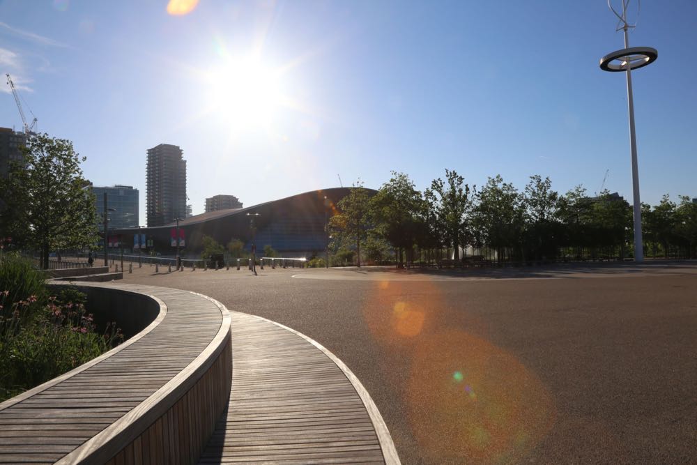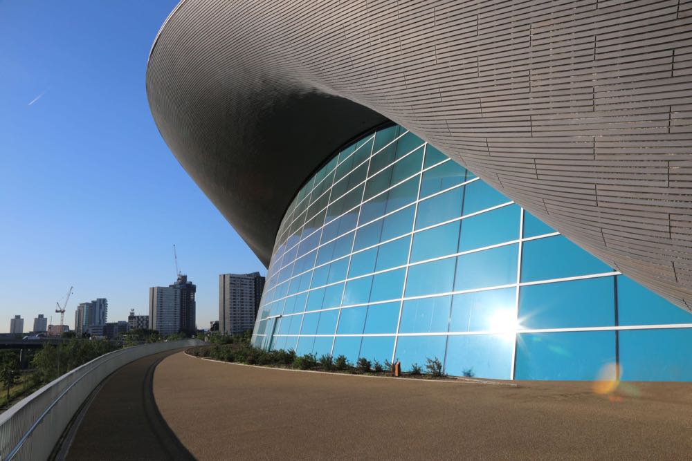 Views from the F10 Bridge looking onto the London Aquatics Centre