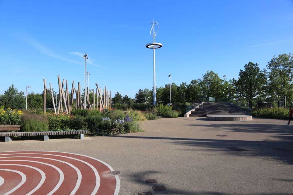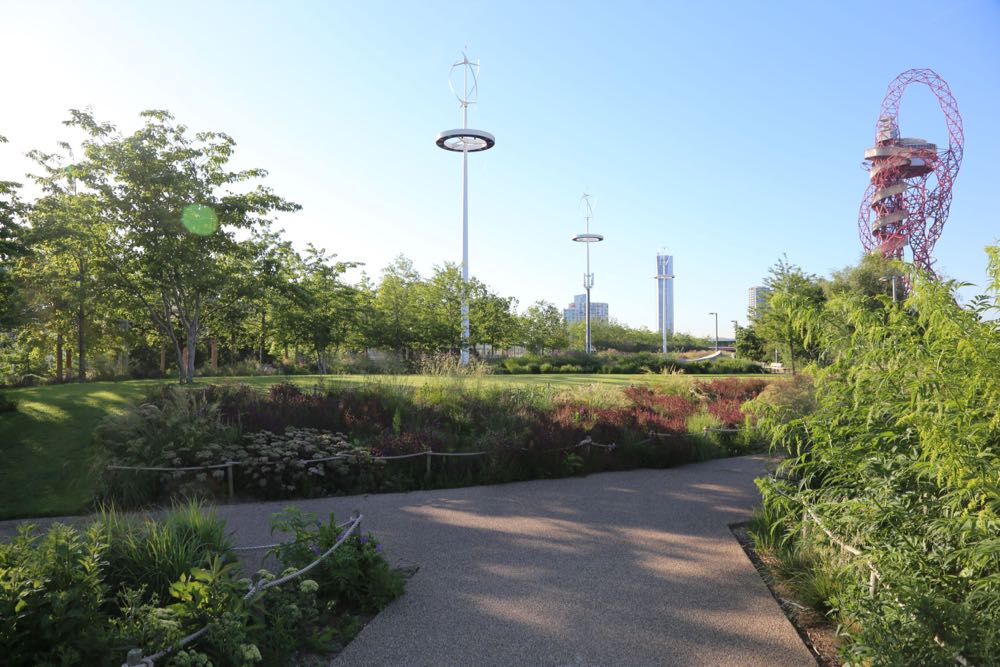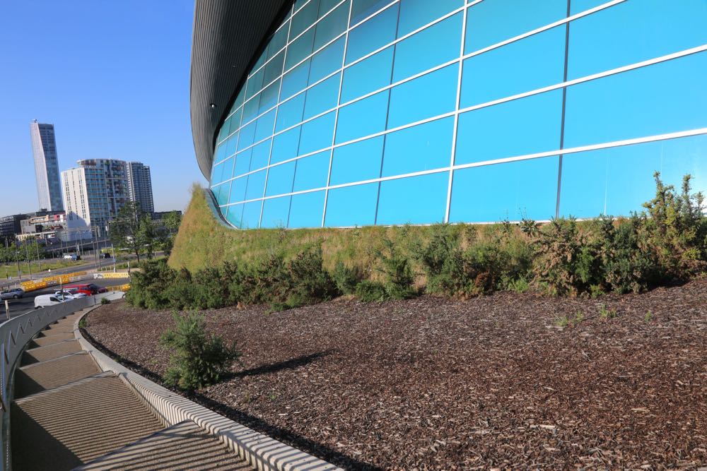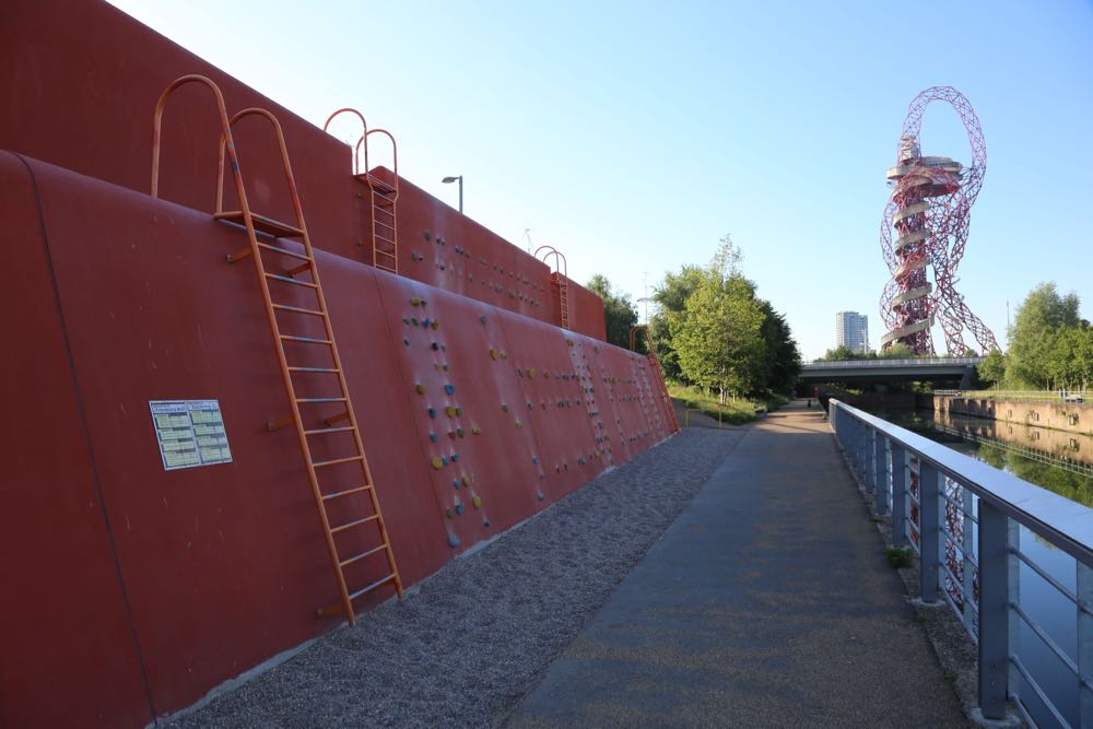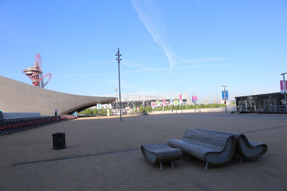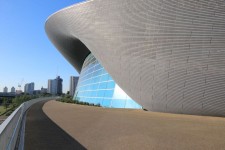 Views from the F10 Bridge looking onto the London Aquatics Centre